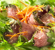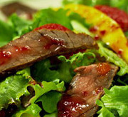 1 cooked Top Sirloin Grilling Steak (seasoned and basted with barbecue sauce), thinly sliced